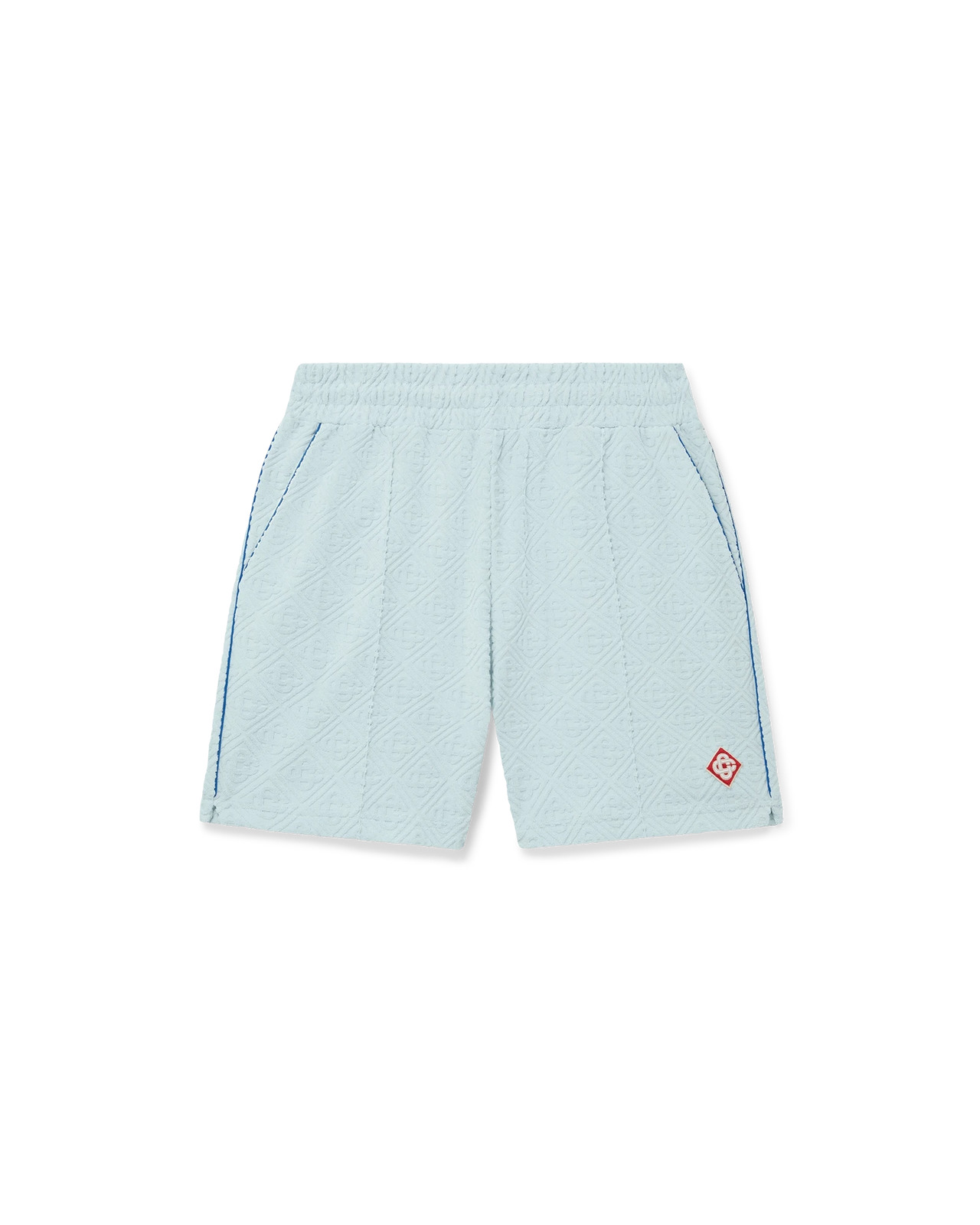 The monogram towelling shorts are crafted from a monogram cotton blend towelling fabric and feature the house's signature diamond logo. Completed with slanted front pockets, a patch back pocket, drawstring fastening, and pin-tuck seams. - Towelling monogram fabric - Main: 86% cotton 13% polyamid 1% elastane - Lining: 100% cotton - Contrast: 100% polyester - Applique: 95% viscose 5% polyester - Colour: light-blue - Delicate machine wash - Made in Portugal - The model is 187cm/6'1 and is wearing a size M