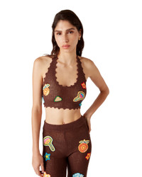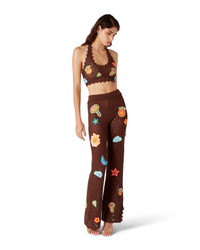 The motif crochet crop top is a halter neck design crafted from an open-weave crochet cotton fabric. Completed with motifs of the house's classic design elements, and string fastening at the back. This piece is intended to be worn with its coordinating motif crochet trousers. - Crochet motif fabric - Main: 35% cotton 30% polyester 18% silk 17% linen - Applique: 100% cotton - Colour: brown - Specialised dry clean only - The model is 180cm/5'11 and is wearing a size S