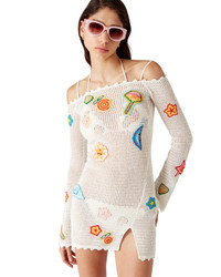 The motif crochet dress is a long-sleeve knitted mini design crafted from crochet fabric and features the house's signature design elements. Completed with bell sleeves with slit detail, a boat neck, and slit hem detail. - Crochet motif fabric - Main: 35% cotton 30% polyester 18% silk 17% linen - Applique: 100% cotton - Colour: white - Specialised dry clean only - The model is 180cm/5'11 and is wearing a size S