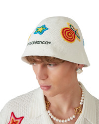 The motif crochet hat is a bucket style, crafted from a soft textured open weave crochet cotton fabric - the ultimate summer staple. Completed with a brim, an embroidered Casablanca logo, and appliques of the house's classic design elements at its centre. - Cotton knit fabric - Main: 100% cotton - Applique: 100% cotton - Colour: white - Specialised dry clean only - One size only - Estimated to ship on 19 February 2025