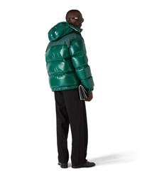 The nylon puffer jacket is a modern boxy outerwear design crafted from ripstop nylon fabric with down filling and contrasting monogram jacquard panel across the shoulders. Completed with a hood featuring CC logo toggles and drawstring fastenings, a stand-up collar providing extra warmth and protection against the elements, a zip closure with the house's signature diamond logo zipper tab, front pockets with zip closure, branded adjustable cuff straps, and elasticised hem and cuffs. - Ripstop fabric - Main: 100% polyamide - Lining: 100% polyamide - Colour: black - Specialised dry clean only - Made in Italy - Relaxed fit - The model is 187cm/6'1 and is wearing a size M