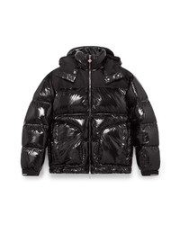 The nylon puffer jacket is a modern boxy outerwear design crafted from ripstop nylon fabric with down filling and contrasting monogram jacquard panel across the shoulders. Completed with a hood featuring CC logo toggles and drawstring fastenings, a stand-up collar providing extra warmth and protection against the elements, a zip closure with the house's signature diamond logo zipper tab, front pockets with zip closure, branded adjustable cuff straps, and elasticised hem and cuffs. - Ripstop nylon fabric - 100% polyamide - Colour: black - Specialised dry clean only - Made in Italy - Relaxed fit - The model is 177cm/5'9.5 and is wearing a size S - Exclusive to casablancaparis.com