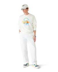 The Oasis sweatshirt is a long-sleeve printed design crafted from organic cotton fabric, featuring the house's seasonal artwork with design elements of nature, architecture, and tennis. Completed with a classic rib crew neck, rib cuffs and hem. - Cotton loopback jersey fabric - 100% organic cotton - Contrast: 95% cotton 5% elastane - Colour: white - Delicate machine wash - Made in Portugal - The model is 185cm/6'1 and is wearing a size M - Exclusive to casablancaparis.com and selected retailers