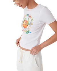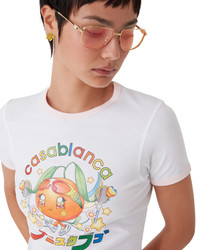 The Orange Mascot ringer t-shirt is a short-sleeve design, featuring the season's artwork of this character, designed as an orange, another key figure in our universe, featuring Casa accessories, glasses, and sneakers. Completed with a classic crew neck. - Cotton jersey fabric - 100% organic cotton - Colour: white - Delicate machine wash - Made in Portugal - Slim fit - The model is 179cm/5'9.5 and is wearing a size S