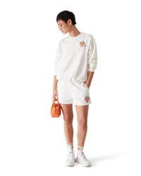 The Orange Mascot sweatshirt is a long-sleeve, embroidered design featuring the season's artwork of this character, designed as an orange - another key figure in our universe, featuring Casa accessories, glasses, and sneakers - primarily featured in the womenswear looks. Completed with a classic rib crew neck, cuffs and hem. - Cotton loopback jersey fabric - Main:100% organic cotton - Colour: off-white - Delicate machine wash - Made in Portugal - Relaxed fit - The model is 179cm/5'9.5 and is wearing a size S