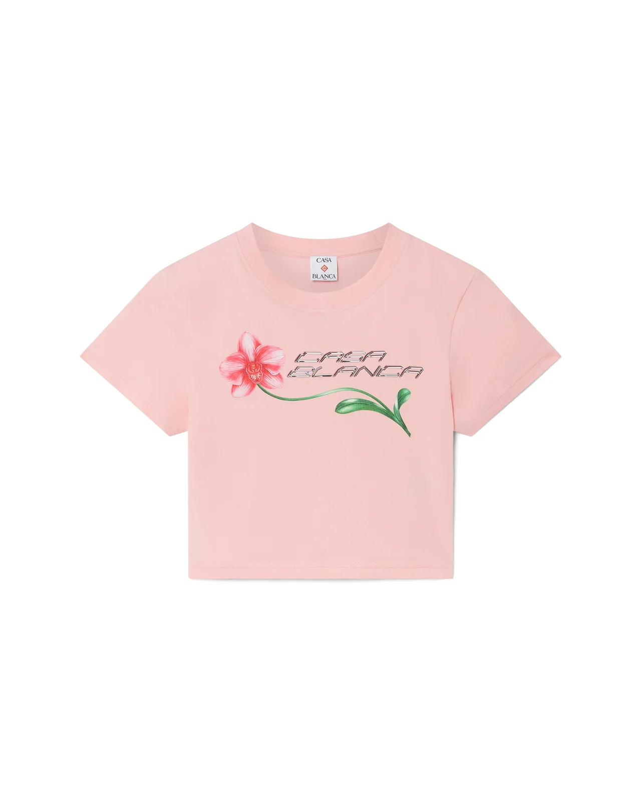The Orchid Logo cropped baby tee is a refined short-sleeve, fitted silhouette featuring the house's distinctive Orchid Logo incorporating Casablanca branding. The design is completed with a cropped hem for an effortless, modern finish. - Cotton fabric - 95% organic cotton 5% elastane - Colour: pale pink - Delicate machine wash - Made in Portugal - Slim fit