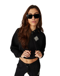 The pearl diamond cropped hooded sweatshirt is an elevated sportswear design crafted from organic cotton. Completed with a hood with gold-plated eyelets, gold-tipped drawstring, branded toggle for secure fastening, a pearl and crystal diamond path and rib cuffs and hem. - Cotton loopback jersey fabric - Main: 100% organic cotton - Contrast: 95% cotton 5% elastane - Colour: black - Delicate machine wash - Made in Portugal - Model is 177cm/5'10 and is wearing a size S