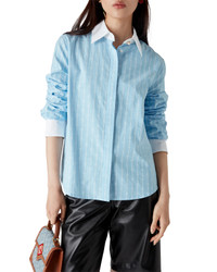 The Laurel pinstripe long-sleeve shirt is a tailored design crafted from cotton jacquard fabric. Completed with a contrast white cuffs and a point collar, hidden button closure with interlocking CC logo corozo buttons, and a curved hem. - Cotton jacquard fabric - Main: 97% cotton 3% viscose - Contrast: 100% cotton - Colour: pinstripe blue - Specialised dry clean only - Made in Italy - The model is 177cm/5'9.5and is wearing a size S