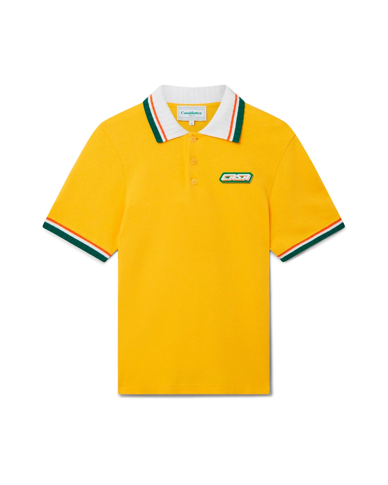 The Pique polo shirt is a classic silhouette that features the house's Casa branded patch. Crafted from an organic cotton pique fabric, completed with contrast detail rib collar and cuffs, and a three-button placket closure. Cotton pique fabric 100% organic cotton Contrast: 98% organic cotton 2% elastane Colour: yellow Specialised dry clean only Made in Portugal Fits true to size, take your regular size The model is 187cm/6’1 and is wearing a size S