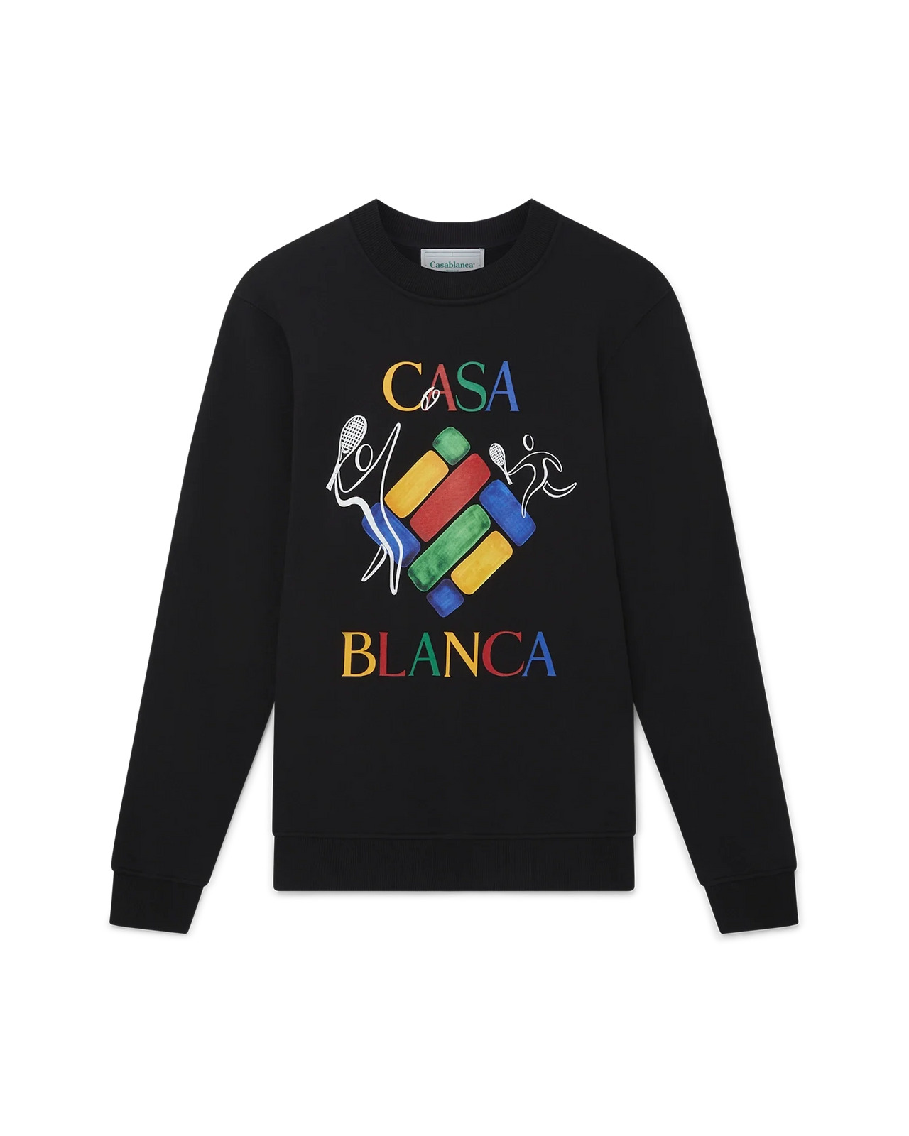 The Players Diamond screen-printed organic cotton sweatshirt features seasonal artwork for the exclusive Nordstrom capsule centred around modern tennis-inspired athleisure. Completed with a classic crewneck, long sleeves and Casablanca Paris branded label, designed for a relaxed fit. - 100% organic cotton - Colour: black - Delicate machine wash - Made in Portugal - Fits true to size, take your regular size - The model is 187cm/6’1 and is wearing a size M - Exclusive to casablancaparis.com & nordstrom.com
