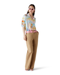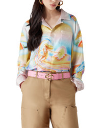 The Psychedelic Nirvana silk shirt is an all-over printed design crafted from silk twill fabric featuring artwork inspired by 70s airbrushed surfboards in California using pastel colours which give the print an almost dream-like, idealistic feeling. Finished with a Cuban collar, a breast pocket, hidden button closure with interlocking CC corozo buttons, and a gold rim enamel button on each cuff. - Silk twill fabric - 100% silk - Psychedelic Nirvana multicolour - Specialised dry clean only - Made in Italy - The model is 187cm/6'1 and is wearing a size M