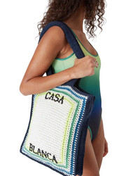 The crochet bag is a refined cotton design featuring the house's stacked logo with striped green and yellow accents. Completed with straps that allow the tote style to be worn over the shoulder or in the hand, and a relaxed crochet construction. - Crochet cotton fabric - 100% cotton - Lining: 100% lyocell - Colour: white - Specialised dry clean only - Made in China - Exclusive to casablancaparis.com and our Paris and LA flagship stores