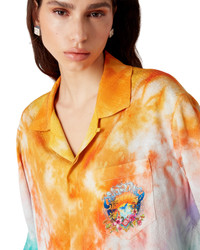 The Surf Trip long-sleeve silk shirt is a printed design crafted from silk fabric featuring seasonal artwork inspired by vintage Malibu surf culture using typography from that era, on a tie-dye backdrop referencing hippy culture. Completed with a Cuban collar, hidden button closure, interlocking CC logo corozo buttons, and gold rim enamel buttons on the cuffs. - Silk fabric - 100% silk - Surf Trip multicolour - Specialised dry clean only - Made in Italy - The model is 185cm/6'1 and is wearing a size M