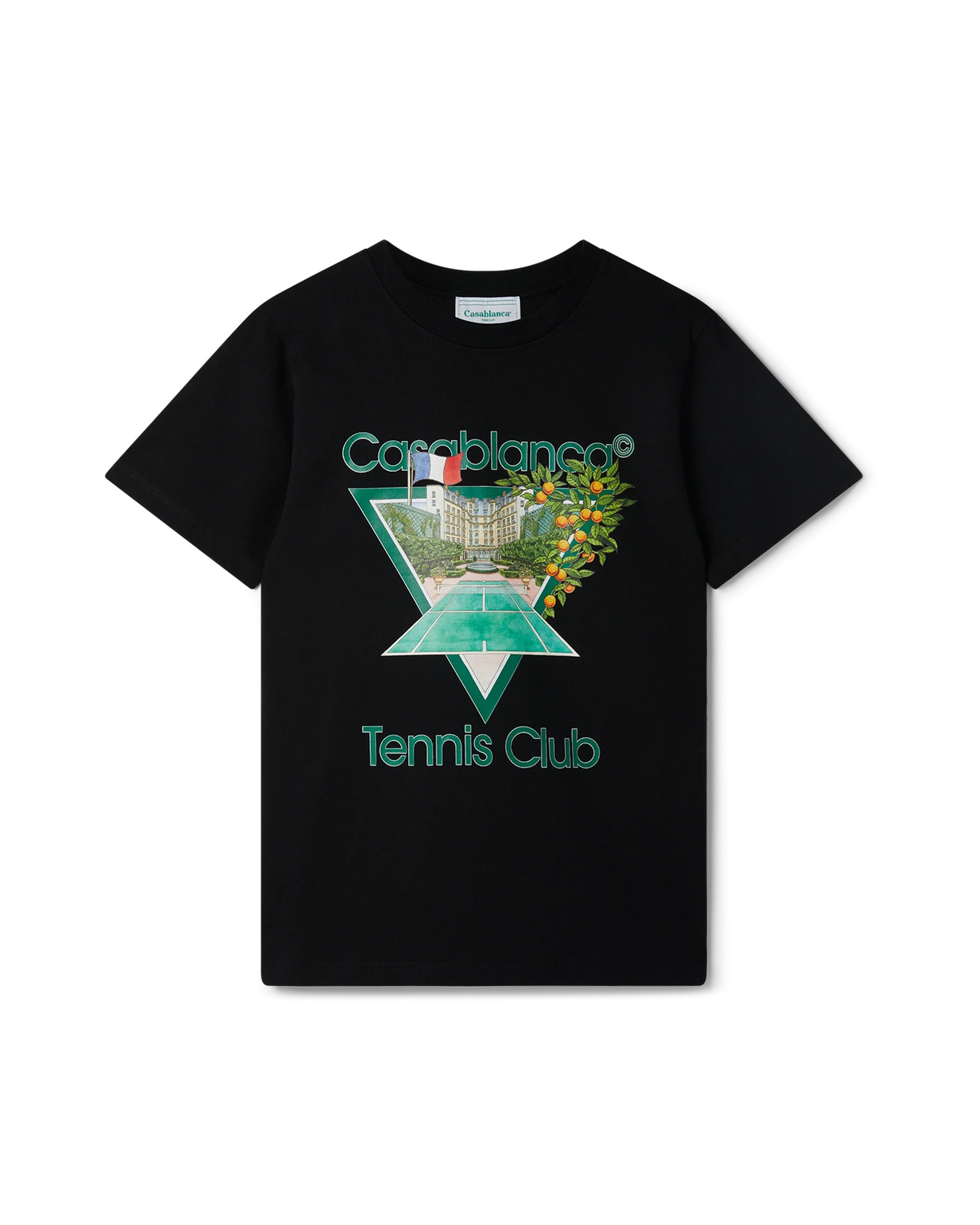 The Tennis Club Icon screen-printed organic cotton t-shirt features a seasonal take on our signature Tennis Club Icon artwork. Completed with a classic crewneck, short sleeves and Casablanca Paris branded label, designed for a relaxed fit. - 100% organic cotton - Colour: black - Delicate machine wash - Made in Portugal - Unisex fit, take your regular size - Exclusive to casablancaparis.com & ssense.com