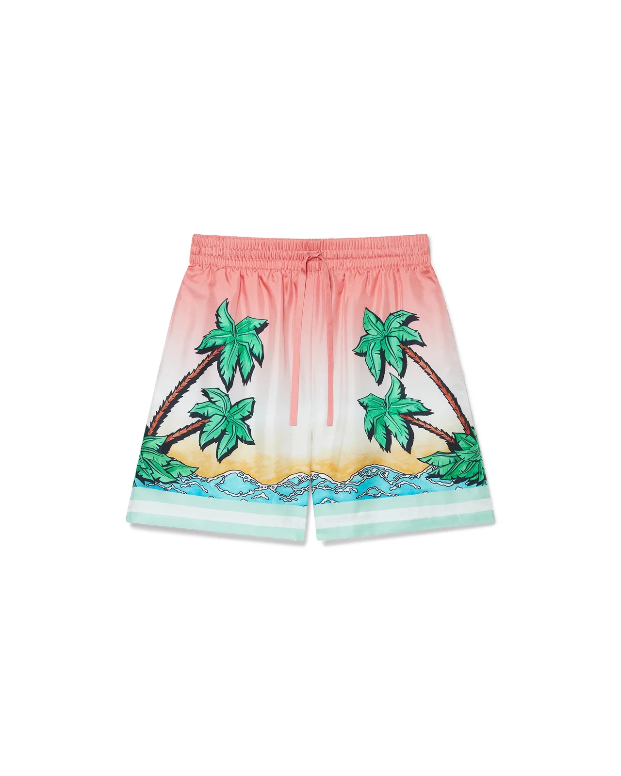 The Tennis Club silk shorts are an all-over printed design featuring artwork reinterpreting the house's Tennis Club print in a surf theme, in the style of a graphic sketch drawn with markers, crafted from silk twill fabric. Finished with an elasticated waistband, drawstring fastening, in-seam side pockets, a back patch pocket, and hem detail. - Silk twill fabric - Main: 100% silk - Lining: 100% polyester - Colour: pink multicolour - Specialised dry clean only - Made in Italy - The model is 187cm/6'1 and is wearing a size M