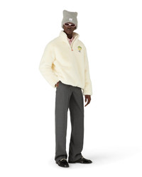 The Tennis Mascot quarter zip faux fur jacket is a long-sleeve design featuring seasonal artwork of the Kawaii tennis ball - this character, is a key part of our universe. It incorporates elements like the Laurel leaf, the Atlantis sneaker, the racket, and the kawaii eyes. We’ve chosen to feature this character as the central artwork for all the men’s styles in the collection. Completed with a zip closure featuring the house's signature diamond logo zipper tab and leather placket, a funnel collar with leather lining, and Casablanca tape edge detail on the cuffs and hem. - Faux fur fabric - Main: 100% polyester - Trim: 100% leather - Colour: white - Specialised dry clean only - Made in Lithuania - Relaxed fit - The model is 187cm/6'1 and is wearing a size M