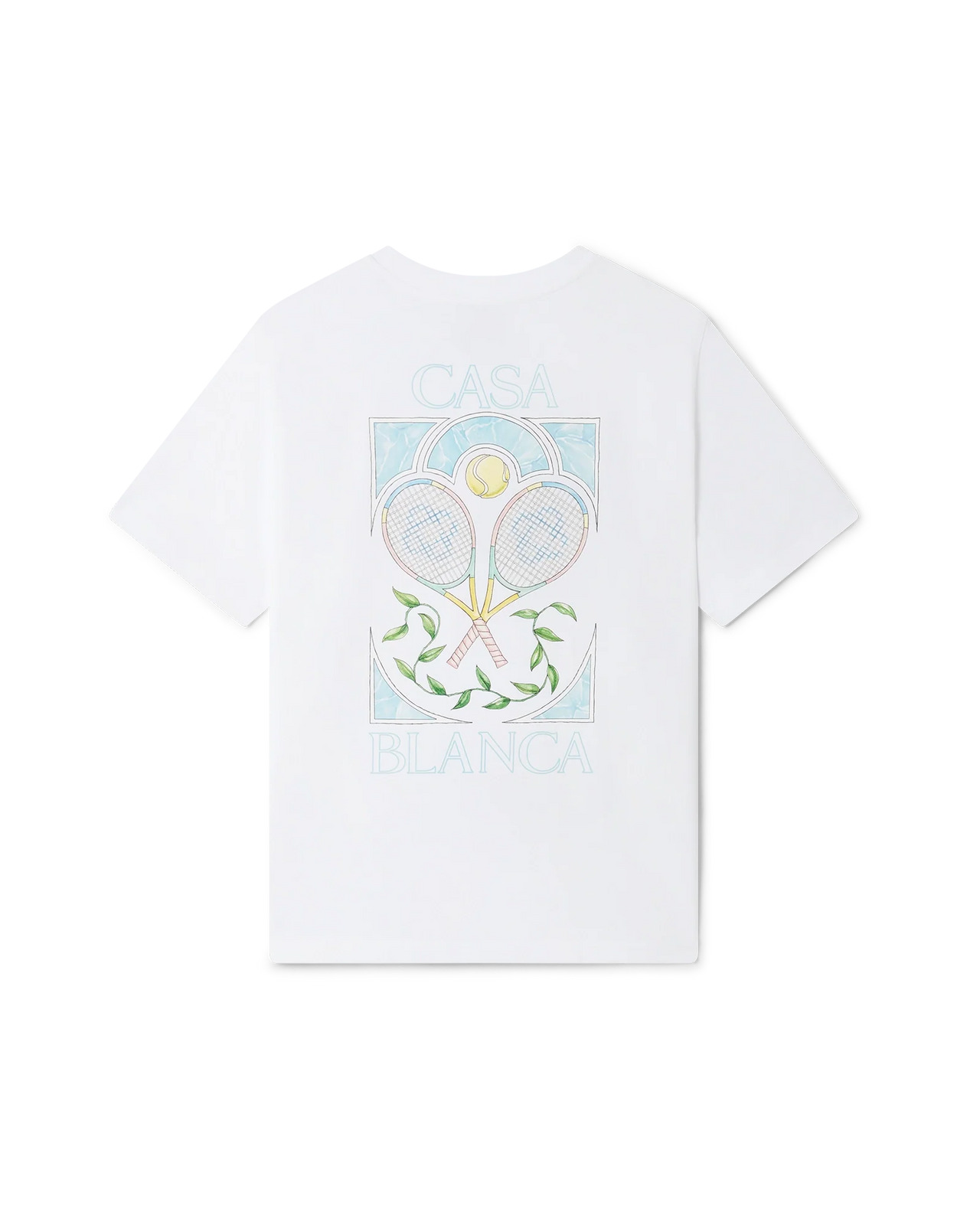 The Tennis Pastelle t-shirt is a short-sleeve printed design featuring artwork inspired by nature, architecture, and tennis in this season's pastel colours. Crafted from organic cotton and complete with a classic ribbed crew neck. 100% organic cotton Colour: white Delicate machine wash Made in Portugal Fits true to size, take your regular size The model is 187cm/6’1 and is wearing a size M