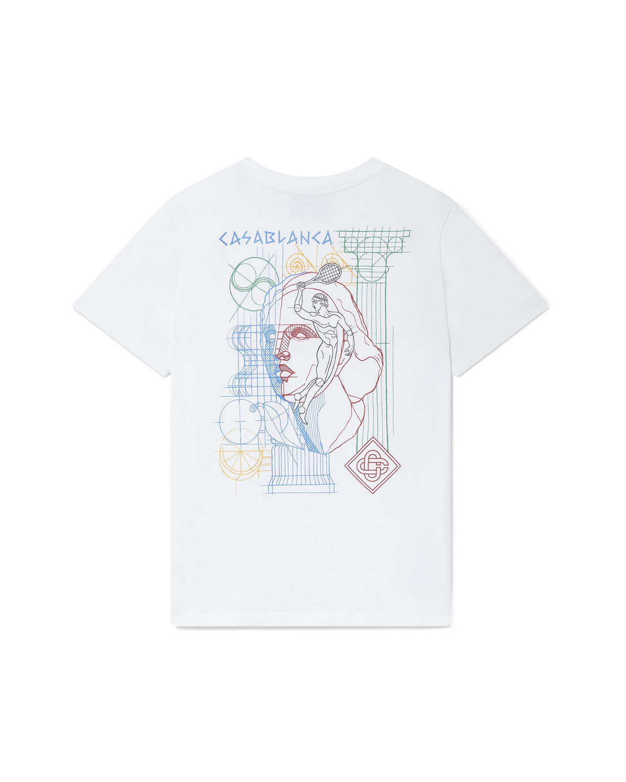 The Tennis Play in Progress t-shirt is a short-sleeved printed design, taking inspiration from architectural sketches showing all the linework, crafted from a jersey cotton fabric. Completed with the house's seasonal artwork inspired by tennis, architecture, and ancient Greece, Casablanca logo written in an ancient Greek style text, and a classic crew neck. - 100% organic cotton - Colour: white - Delicate machine wash - Wash and iron inside out, do not tumble dry - Made in Portugal - Fits true to size, take your regular size - The model is 187cm/6’1 and is wearing a size M