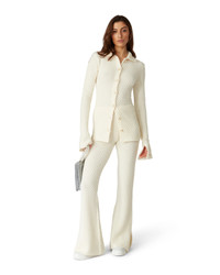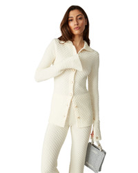 The textured knitted shirt is a long-sleeved design crafted from cotton blend fabric. Completed with a collar, flared slit sleeves, front button closure, signature gold rim pearl buttons, and a gold-plated interlocking CC rivet. - Cotton textured fabric - 65% cotton 35% polyamide - Colour: white - Specialised dry clean only - Fits true to size, take your regular size - Model is 177cm/5'10 and is wearing a size S
