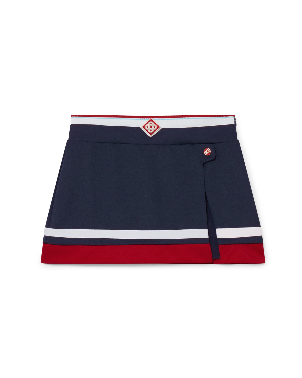 The tricot mini skirt is a short style crafted from tricot fabric. Completed with a waistband featuring the house's signature diamond logo, fitted under shorts, a slit, and side zip closure. - Tricot fabric - Main: 54% polyester 46% cotton - Lining: 100% polyester - Colour: navy - Delicate machine wash - Made in Portugal - Fits true to size, take your regular size - The model is 177cm/5'9.5 and is wearing a size S