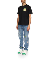 The Triomphe D'Orange t-shirt features a print of the house's signature artwork incorporating tennis and our orange pyramid repeated in a larger print on the back. Crafted from black jersey and completed with a classic crewneck and Casablanca branded label. - 100% organic cotton - Colour: black - Delicate machine wash - Made in Portugal - Fits true to size, take your regular size - The model is 187cm/6O1 and is wearing a size M