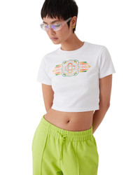 The Unity is Power cropped baby t-shirt is a short-sleeve printed design featuring the house's signature elements - 'unity is power' is a strong peaceful message we wanted to spread which featured in a previous collection. Completed with a classic crew neck. - Cotton jersey fabric - 95% pima cotton 5% elastane - Colour: white - Delicate machine wash - Made in Portugal - Slim fit - The model is 179cm/5'9.5 and is wearing a size S