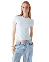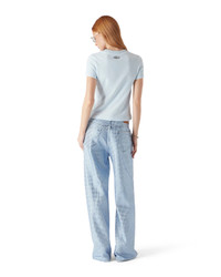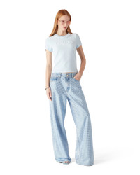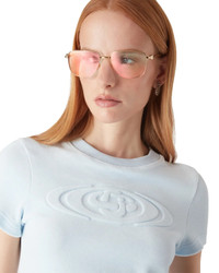 The velour short-sleeve t-shirt is a classic design featuring the house's warped logo embossed at its centre. Completed with a classic ribbed crew neck and a slim silhouette. - Viscose fabric - 88% Cotton 11% Polyamide - Warped logo embossed contrast - Colour: blue - Specialised dry clean only - Made in Portugal - Slim fit