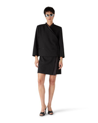The wool tailoring wrap skirt is a short style crafted from wool tailoring fabric. Completed with a flat shank CC logo button, a hem-to-waist slit, and a black contrast pleat detail along the slit. - Wool tailoring fabric - Main: 100% wool - Lining: 100% viscose - Colour: black - Specialised dry clean only - Made in the UK - Slim fit - The model is 177cm/5'9.5 and is wearing a size S