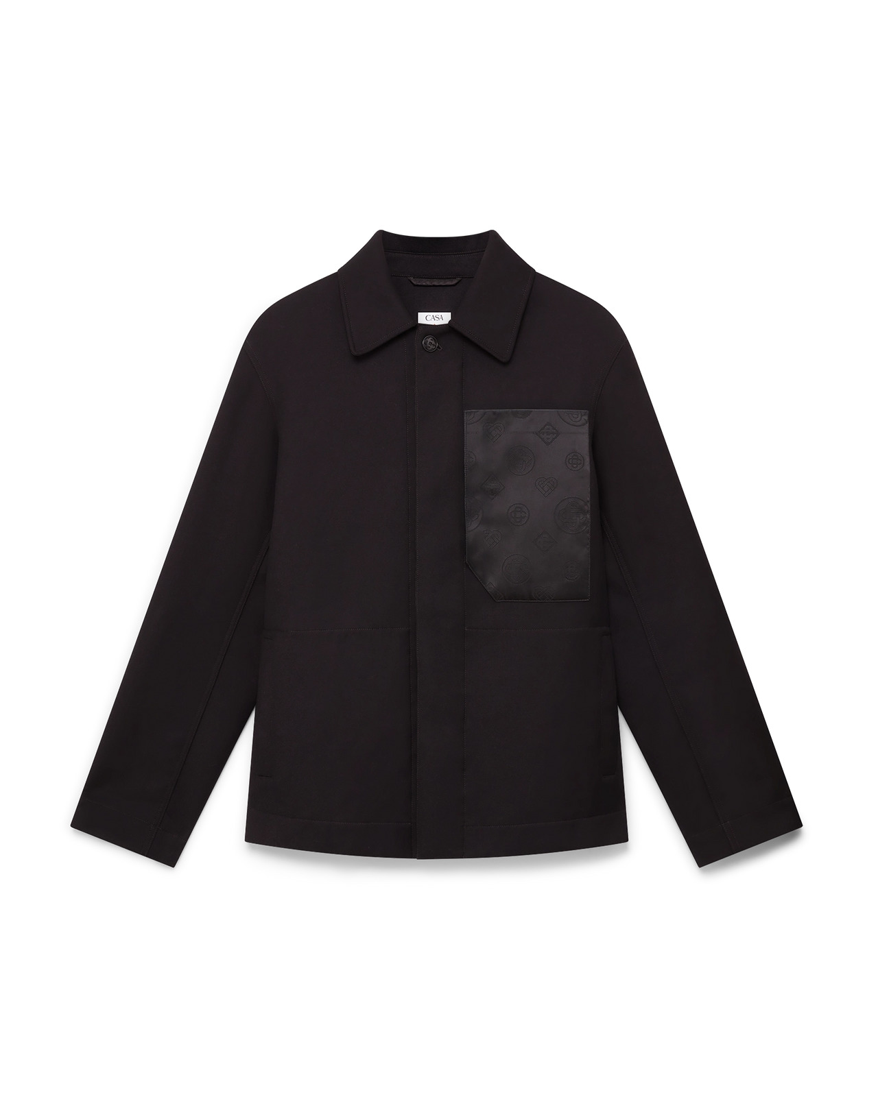 The wool workwear jacket is a long-sleeve relaxed design crafted from technical wool fabric. Completed with contrast breast pocket and yoke featuring the house's Honeydew logo repeat, a collar, button closure, and interlocking CC logo corozo buttons. - Bonded technical wool fabric - Main: 51% polyester 27% cotton 18% wool 4% elastane - Contrast: 100% polyamide - Colour: black - Specialised dry clean only - Made in Italy - Relaxed fit - The model is 187cm/6'1 and is wearing a size M
