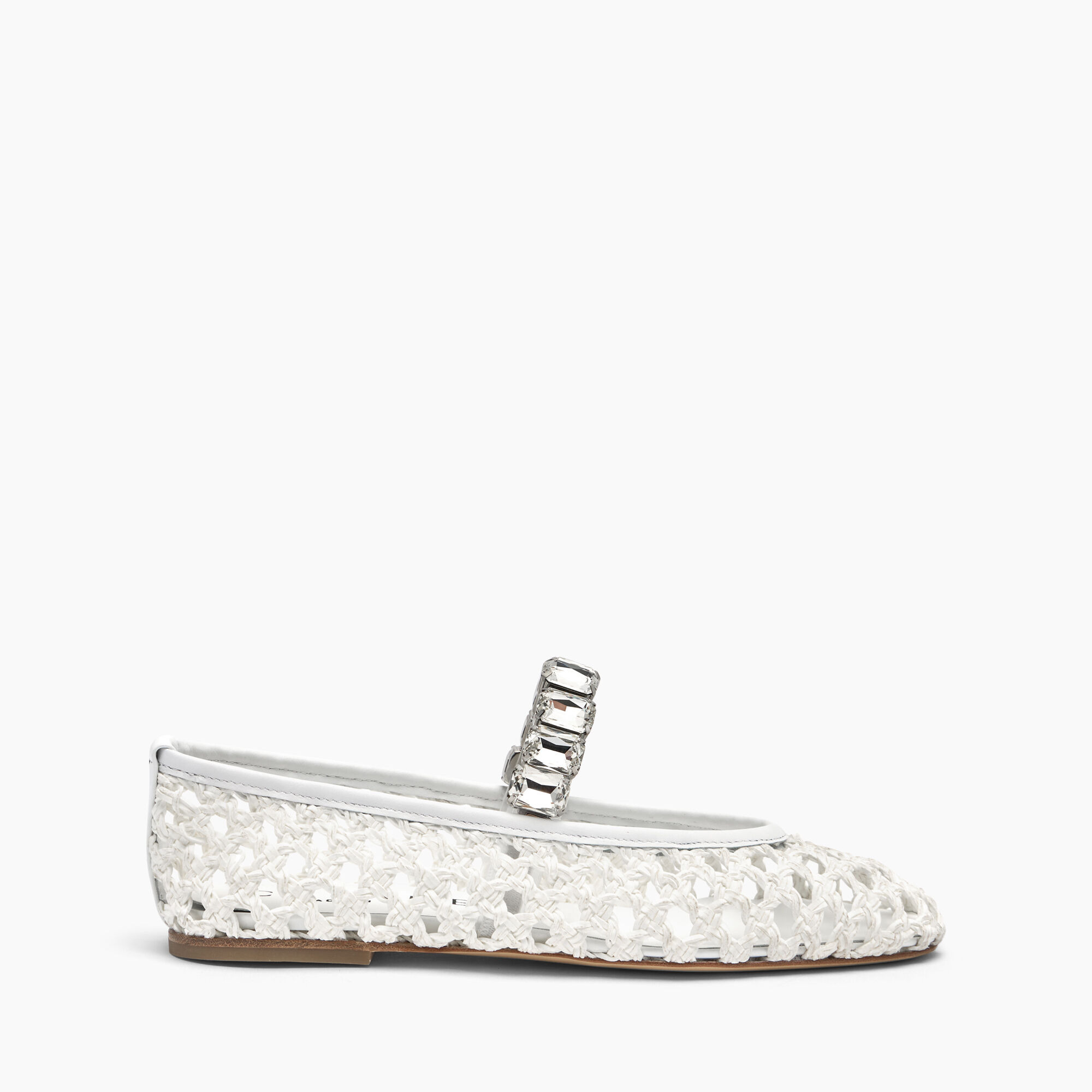 The ballerina is undoubtedly the most desired model for the new SS25 season, capable of lending allure to any look, from the most casual to the most formal. For women who do not want to renounce a maximalist touch, Casadei proposes the new ballerina, in the white variant, made with vegan leather stripes and embellished with a maxi elastic bracelet of crystals, which fits perfectly around the instep. The leather sole ensures optimal comfort, making this ballerina the ideal choice for those who wish to face the day with style and class. Details - Synthetic woven - 70% Polyurethane, 17% Polyester and 13% Cotton - Leather Bottom. - 100% Made In Italy - Code: 1A290J0101C28019999
