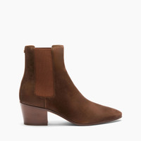 The Beat ankle boot in suede, in cocoa colour, is a reinterpretation of the iconic Western boot. The tapered toe and angled leather heel are the distinguishing features of this trendy and versatile model. Elastic bands on the sides favour the fit. Details - Suede - Leather Covered Heel 50 Mm / 1.9 Inches - 90% Calf Leather and 10% Elastan - 100% Made In Italy - Code: 1Q202Y0501C18342403