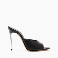 Casadei presents the It shoe of the season, defined by its purity of form. This black leather mule, featuring the iconic steel Blade heel, is the perfect summer accessory and a must in every woman's wardrobe. Details - Calfskin - 100% Kid Leather - Blade Heel In Real Steel 100 Mm / 3.9 Inches - 100% Made In Italy - Code: 1M889V100MC11559000