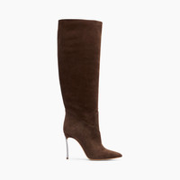 In the name of timeless style, the soft cocoa-coloured suede boot designed by Cesare Casadei is a must-have in your winter wardrobe. With its minimal silhouette, this street-glam style never gets tired. On the Maison's iconic blade heel, this boot is capable of turning your look upside down, from the most classic to the most casual. Details - Suede Calfskin Leather - Blade Heel In Stainless Steel. 100 Mm / 3.9 Inches. - 100% Calf - 100% Made In Italy - Code: 1S329Y100MC18322403