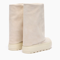 Casadei's reversible boot allows you to wear the same model in two different ways. The upper in soft yogurt-coloured suede calfskin can be worn turned up to add a special touch to your skinny jeans, or as a soft boot to complete the look of rustling dresses. The comfortable internal wedge guarantees stability and practicality, while the lugged rubber sole ensures grip. Essential yet sophisticated boot, perfect for metropolitan looks and winter weekends. The balance between comfort and style makes it a must-have for the cold season. Details - Suede calf leather - 100% Calf - Rubber Bottom - 100% Made in Italy - Code: 2S336Y0801RENNA3219