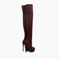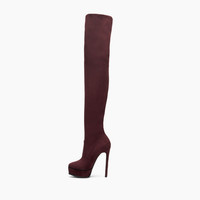 The sensual spirit of the over-the-knee stretch boot is revived in the winter 2024 collection. In Ladybug-coloured suede, it rises on a vertiginous stiletto heel, cushioned by a platform with sinuous lines. This boot enhances the female figure with a glamorous accent. Details - Stretch Suede - Suede Leather Covered Heel: 140 Mm/ 5.5 Inches With 3,5 Cm / 1.37 Inches Platform. - 100% Polyester - 100% Made In Italy - Code: 1T028W1401ARCEU3810