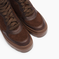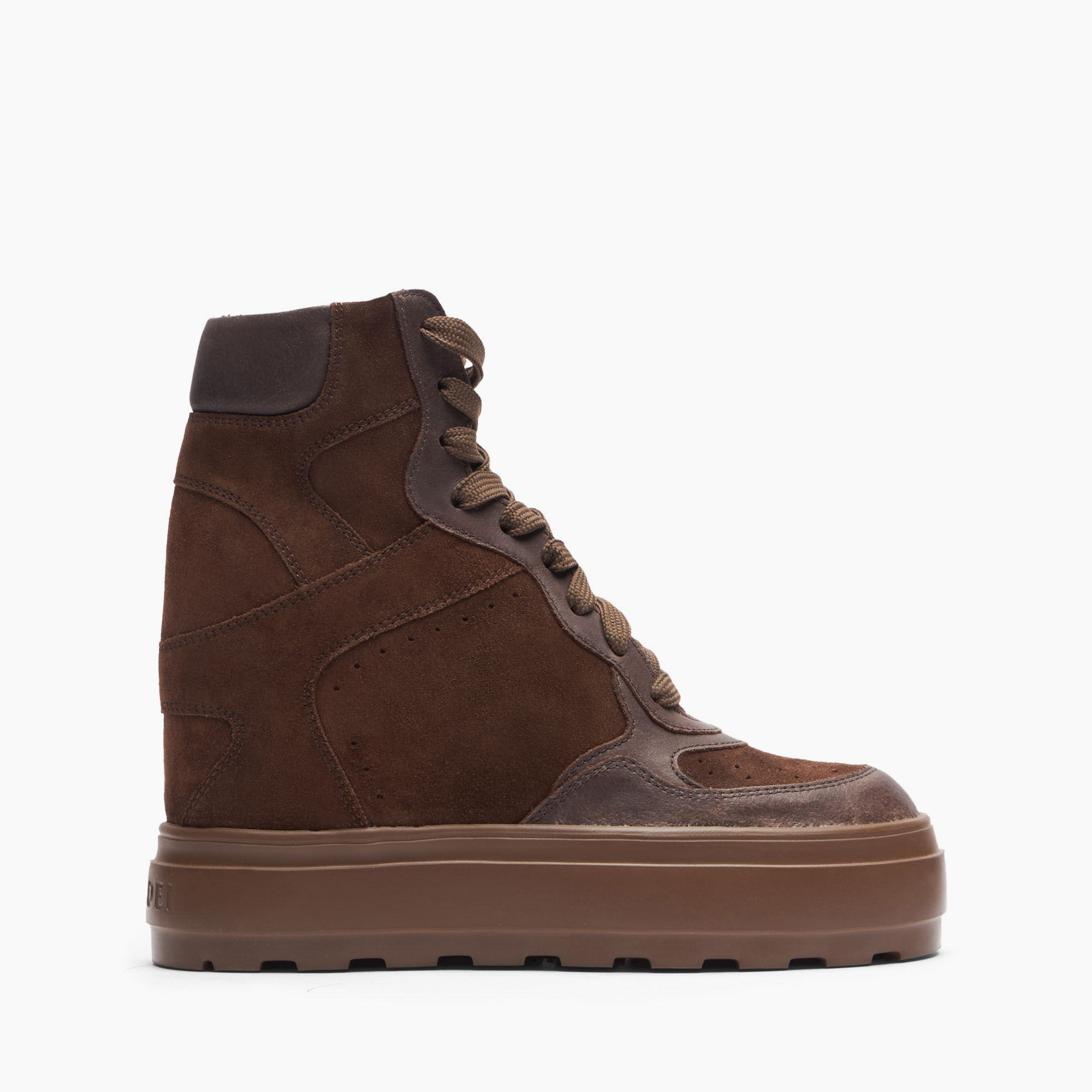 Comfortable lace-up trainer made of cocoa-coloured suede leather that features a rubber lug sole for grip and an internal wedge for stability and practicality. Ideal for an urban style on cold winter days. Details - Suede Calfskin Leather - 80Mm / 3,1Inches Rubber Shoe Bottom. - 100% Calf - 100% Made In Italy - Code: 2X023Y0801NOMAD2403