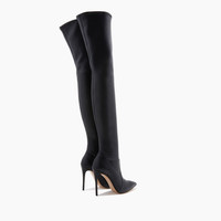 Crafted in Italy, these over-the-knee boots set on the sharp Julia heel and made from black stretch faux nappa leather wrap around the leg like a second skin, ensuring a snug fit. Details - Faux nappa leather made from recycled polyester - 50% Polyurethane and 50% Pet - Nappa-Covered Heel: 100 Mm/3.9 Inches - 100% Made In Italy - Code: 1T012Z1001NEONA9000