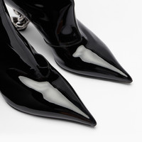 Delivery in 6 weeks – No returns available. The knee-high boot in black patent leather with the “C-Chain” sculptural heel is a bold style statement that combines minimal elegance with architectural audacity. The clean and elongated silhouette of the upper meets the heel, sculpted like a true work of art: a chain shaped from a single block of metal, designed to convey rhythm and movement. A model with sophisticated allure that embodies the essence of contemporary femininity. Details - Calf leather, kid leather - 100% Calf - Sculptural ‘C-Chain’ heel in metal 80mm - 100% Made In Italy - Code: 1S404A080MC29079000