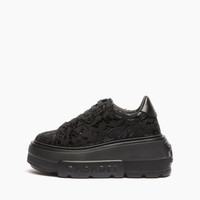 Seasons change but the Nexus sneaker never loses its appeal! Made of black patent fabric with ton sur ton lace applique, this sneaker adds a sensual and edgy touch to your look. With a techno-futuristic bottom and an ultra-lightweight wedge with an innovative design, the Nexus is a true must-have for the season. The iconic C-chain element and maxi logo on the side add a distinctive touch, making this model the flagship of the Maison. Details - Varnished fabric with tone-on-tone lace - 39% Polyurethane, 25% Cotton, 20% Polyester and 16% Nylon - Ultra-light wedge with the Casadei logo on the outside and C-chain logo underneath the sole 70 mm / 2.7 inches - 100% Made In Italy - Code: 2X894U070NT05429000