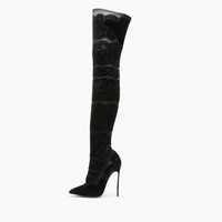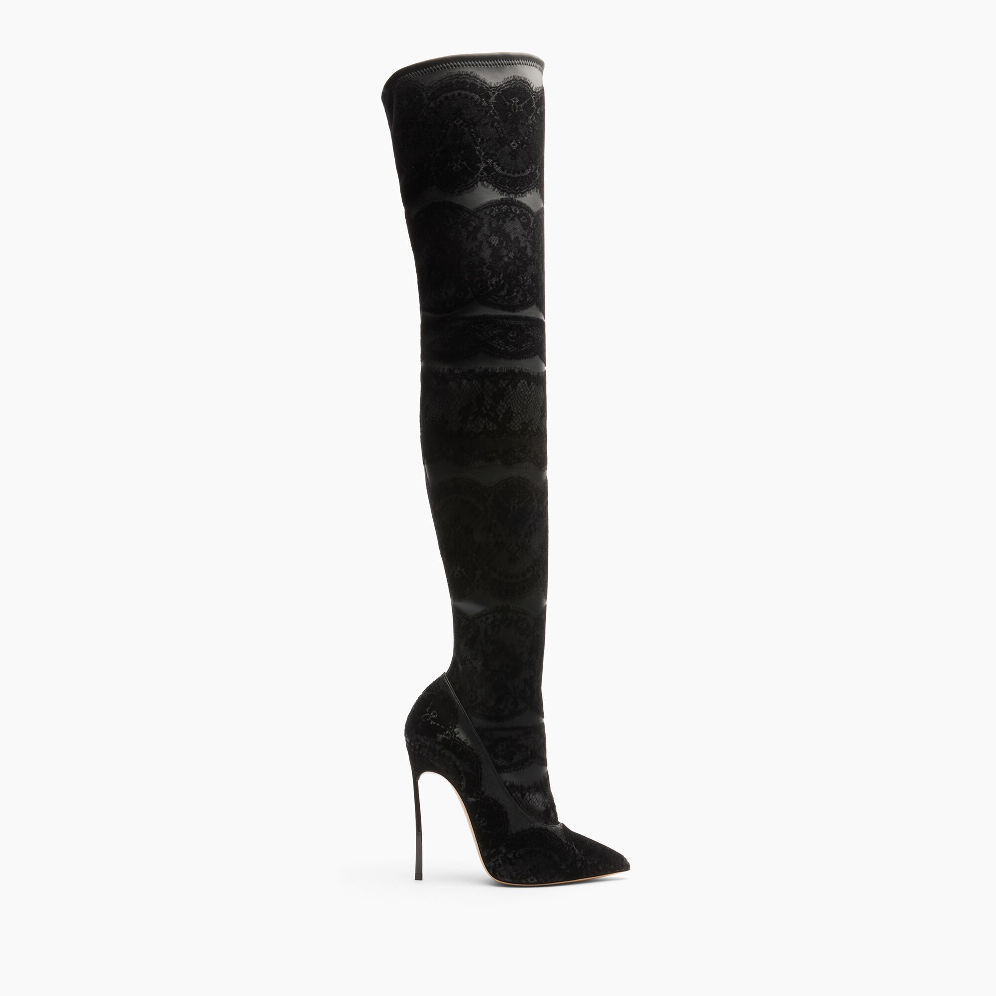 The Lingerie cuissard is the shoe ready to steal the show. With a provocative and seductive spirit, Cesare Casadei designed this model for bold and seductive women. Completing the look, the eye-catching iconic Blade heel and sharp toe of the shape give a sleek and ultra-feminine effect. Details - Fabric and lace effect flocking - 60% Polyurethane and 40% Polyester (100% Polyester) - Blade heel in stainless steel 120 mm / 4.7 inches - 100% Made In Italy - Code: 1T082A120TLNGRE9000