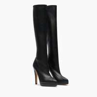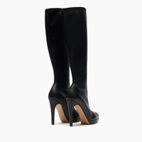 For rockier souls Casadei presents a highly successful platform from the 1990s. The balance between heel, shape and platform makes Michelle the must-have new shoe for fall/winter 25-26. In black vegan stretch nappa leather, this knee-high boot is distinguished by a slightly walled pointed toe shape, a 1-cm platform, and a slim-but-not-too-subtle heel. Details - Stretch vegan nappa leather with a sporty and distinctly natural look - 60% Polyurethane and 40% Polyester - Vegan leather covered heel 100 mm / 3.9 inches - 100% Made In Italy - Code: 1S335Y1001LABBB9000