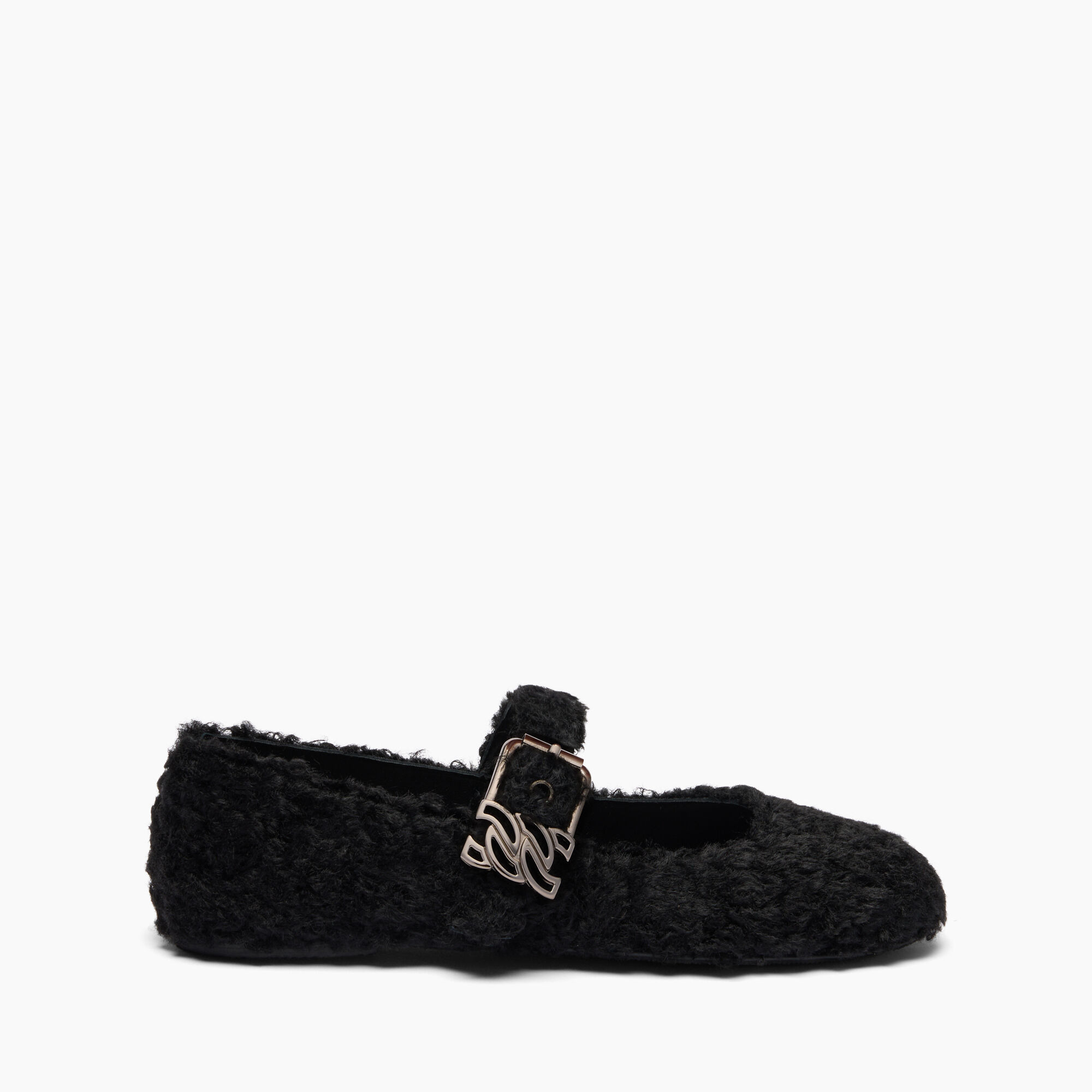 Clean lines and the use of black-colored curly faux fur make the Valsenales ballerina the perfect companion for a casual chic look on a cool fall day. The comfortable fit allows you to start the morning on the right foot, while the unmistakable C-Chain buckle makes this model truly unique. Casadei reinterprets the classic ballerina by making it ultra lightweight with a rubber sole that ensures optimal comfort. Details - Nappa Leather, curly faux lambskin fur - 50% Polyester and 50% Kid - Rubber shoe bottom - 100% Made In Italy - Code: 1A298A0111C25119000
