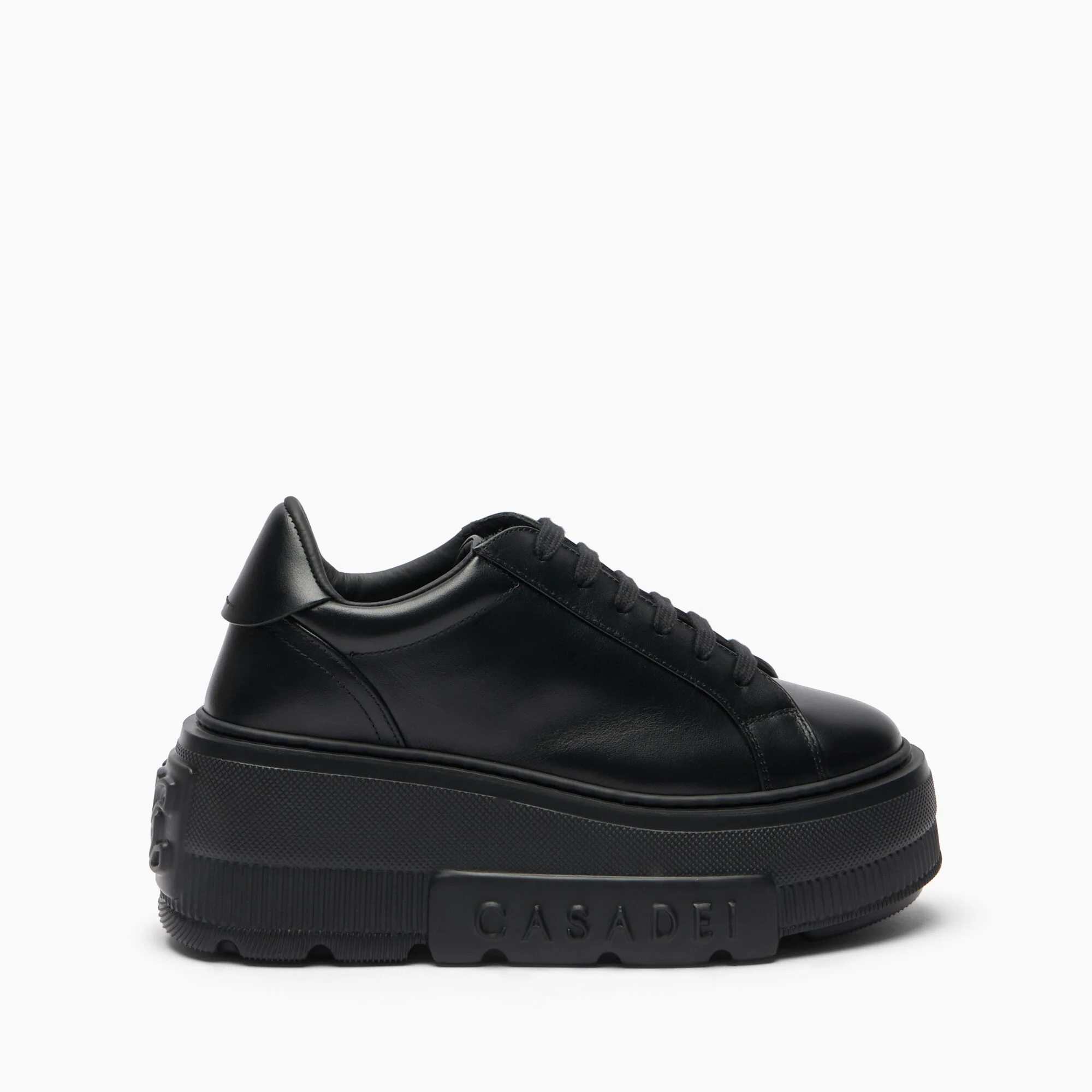 The Nexus sneaker by Casadei is a must-have for your wardrobe. A creation with a techno-futuristic sole, black leather and an ultra-light wedge with a modern design that makes it a must-have for the season. The iconic C-Chain element and the maxi logo on the side give the Maison's flagship sneaker an unmistakable signature feature. Perfect for dynamic, contemporary looks, ideal from morning to night for those seeking comfort and style in every step. Details - Calf leather - 100% Calf - Ultra-Light Wedge With The Casadei Logo On The Outside And C-Chain Logo Underneath The Sole In 70 Mm / 2.7 Inches - 100% Made in Italy - Code: 2X894U070NSALEN9000