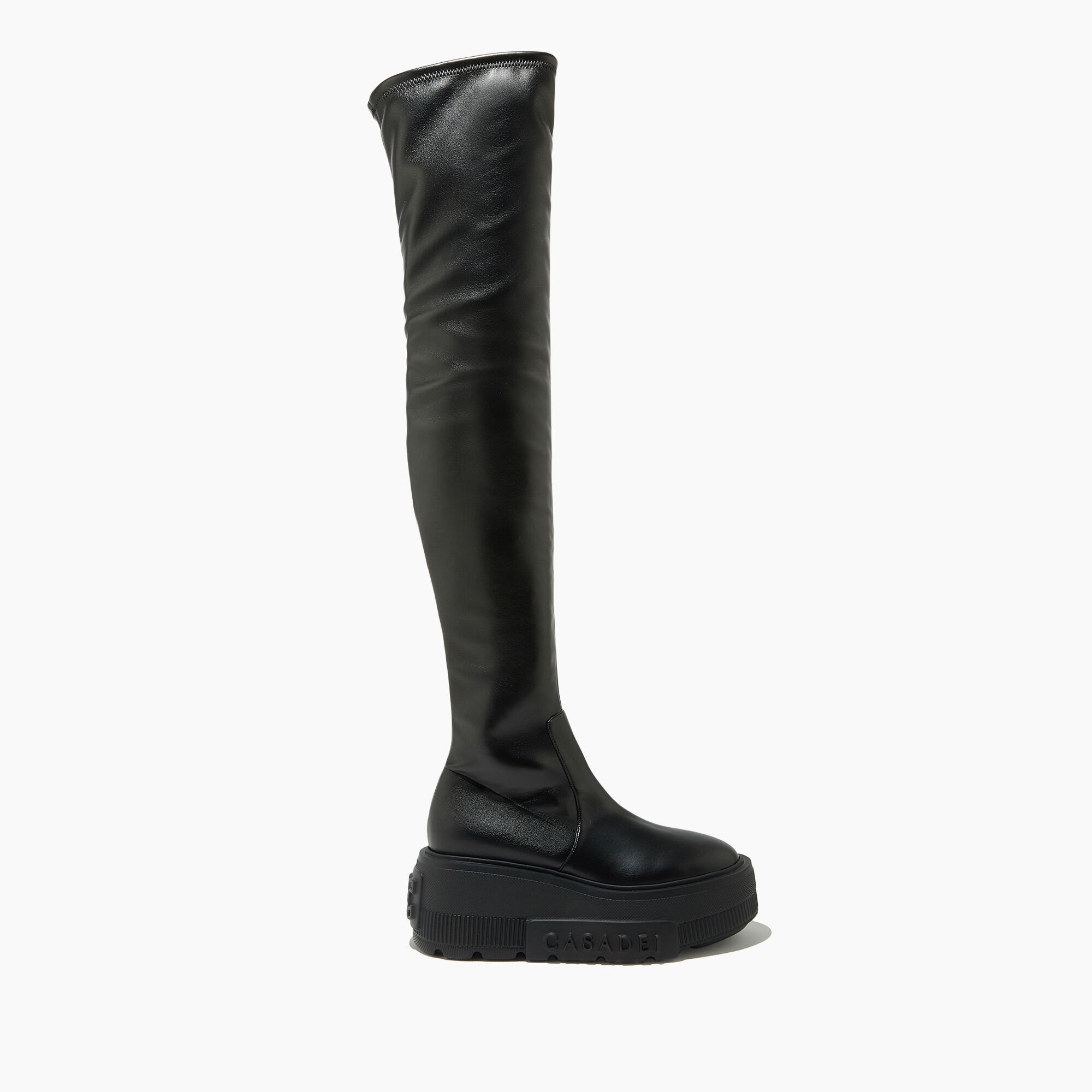 At dawn of an epochal revolution, Nexus, a postmodern techno-futuristic project defined “eternal modern”, was born. An ultra light wedge shows a timeless, always modern look, placed on an over-the-knee boot in cozy and soft stretch nappa leather. Low-life meets high-tech in a capsule dedicated to Casadei’s “replicants.” Details - Stretch Nappa Leather - 50% Polyethylene and 50% Polyurethane - Rubber Sole. - 100% Made In Italy - Code: 2T009T070NNEONA9000