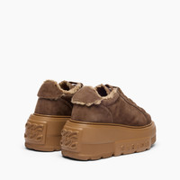 For colder days, the Alpsenales Nexus Sneaker is your ideal ally. A creation with a techno-futuristic bottom, cocoa-colored suede leather and a ton sur ton curly faux fur lined interior. An ultra-lightweight wedge with a modern design that makes it a must-have for the season. The iconic C-Chain element as well as the maxi logo on the side, give a characterizing element impossible not to recognize to the Maison's flagship sneaker. Details - Doubled suede with curly shaved faux fur50% Polyester and 50% KidUltra-light wedge with the Casadei logo on the outside and C-chain logo underneath the sole 70 mm / 2.7 inches - Code: 2X924Z0711T05432403