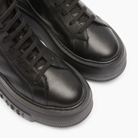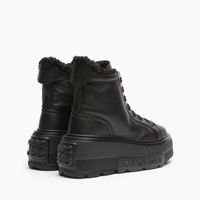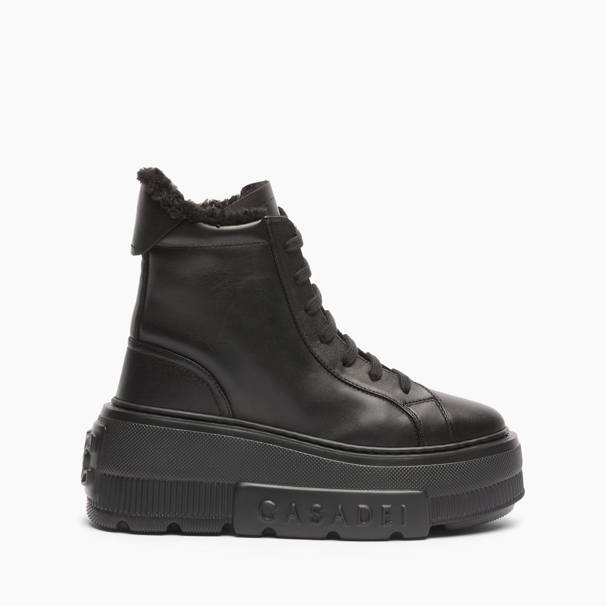 For colder days, the Alpsenales Nexus Sneaker is your ideal ally. A creation with a technofuturistic bottom, black leather and an interior lined with ton sur ton curly synthetic fur. An ultra-lightweight wedge with a modern design that makes it a must-have for the season. The iconic C-Chain element as well as the maxi logo on the side give a characterizing element impossible not to recognize to the Maison's flagship sneaker. Details - Nappa Leather + curly faux lambskin fur50% Polyester and 50% KidUltra-light wedge with the Casadei logo on the outside and C-chain logo underneath the sole 70 mm / 2.7 inches - Code: 2X080A071NT04349000