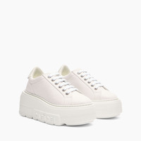 Casadei reinterprets the Nexus sneaker with a refined and luminous spirit thanks to the white lurex fabric, which gives the shoe a discreet yet impactful elegance. The shiny texture catches the light at every step, transforming a casual model into a stylish ally even on the most sophisticated occasions. Comfortable, lightweight and with a contemporary spirit, it is perfect for those who want to combine comfort and glamour, even in the most special moments. Details - Fine-weave lurex fabric with laser engraving of tone-on-tone geometric motifs - 50% Polyurethane, 42% Polyester and 8% Cotton - Ultra-light wedge with the Casadei logo on the outside and C-chain logo underneath the sole 70 mm / 2.7 inches - 100% Made In Italy - Code: 2X063J0701C29139998
