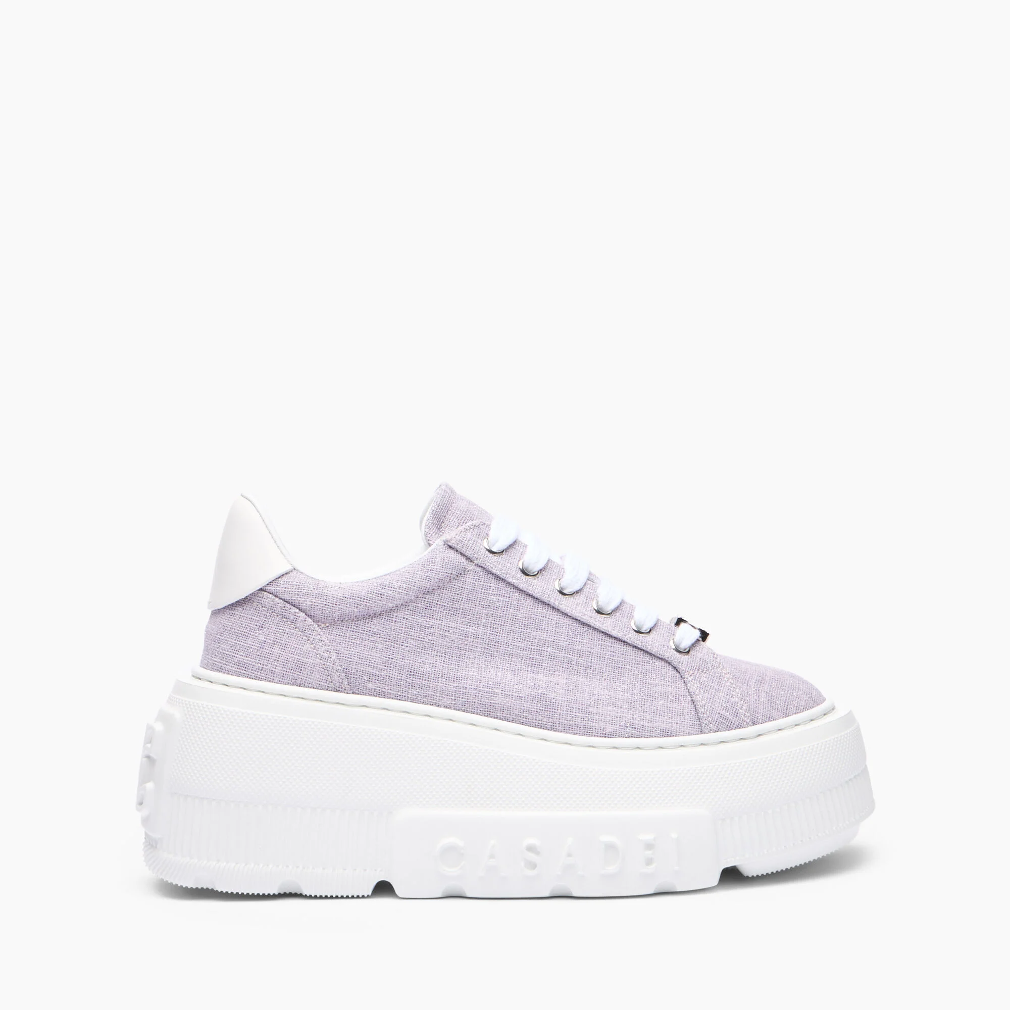 Casadei reinterprets the Nexus sneaker with a refined and luminous spirit thanks to the lavender and white glitter fabric, which gives the shoe a discreet yet striking elegance. The texture catches the light with every step, transforming a casual model into a stylish ally even on the most sophisticated occasions. Comfortable, lightweight and contemporary in spirit, it is perfect for those who want to combine comfort and glamour, even on the most special occasions. Embellishing the design is a metal buckle with the C-Chain logo adorned with rhinestones, adding an iconic and sparkling detail. Perfect for special events, summer evenings, or polished daily looks, they combine elegance and character on every occasion. Details - Ultrafine-grain glitter with micro-diamond overprint - 38% Polyamide, 32% Polyurethane and 30% Thermoplastic polyurethane - Ultra-Light Wedge With The Casadei Logo On The Outside And C-Chain Logo Underneath The Sole In 70 Mm / 2.7 Inches - 100% Made in Italy - Code: 2X041J0701C2988B343