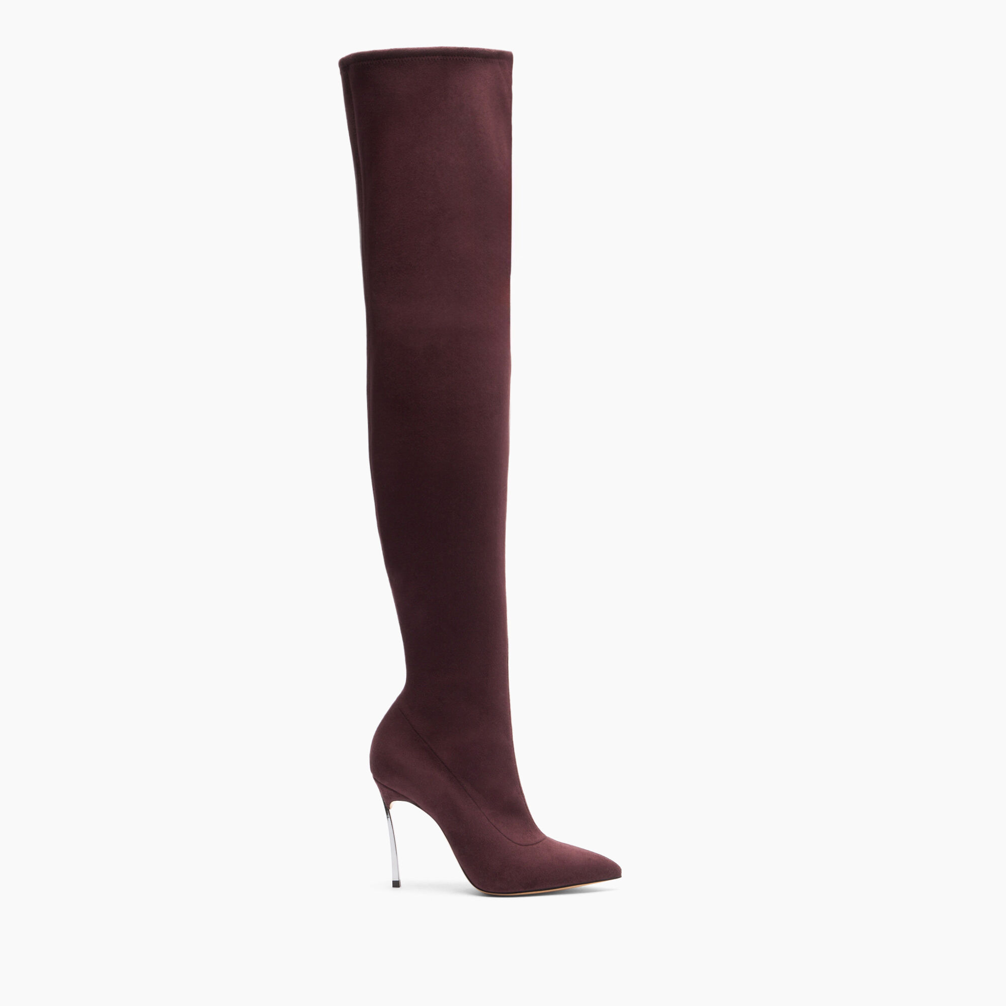 Made in Italy, these over-the-knee boots in ladybug-colored vegan stretch suede wrap around the leg like a second skin. Completing the look, the eye-catching, iconic Blade heel and sharp toe shape give a sleek, ultra-feminine effect. Details - Stretch vegan suede, enveloping with a two-tone effect - 100% Polyester - Blade heel in stainless steel 100 mm / 3.9 inches - 100% Made In Italy - Code: 1T069Y100MC21493810