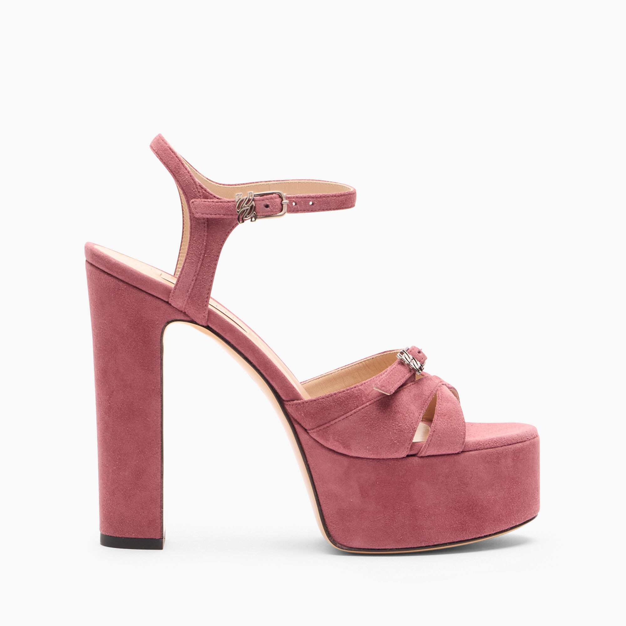 For lovers of heights, Casadei presents for this Fall/Winter 25-26 collection the new Patty plateau. Reminiscent of the 1970s, the 8cm hollow platform addresses the theme of “beautiful and walkable” with style and grit. In reinassance-colored suede, one of this collection's signature colors, it features a chunky 13cm heel, is balanced by the comfortable plateau that slims the figure. The small C-Chain buckle makes this model one of a kind. Details - Suede - 100% Kid - Leather covered heel 130 mm / 5.1 inches with plateau 30 mm / 1.18 inches - 100% Made In Italy - Code: 1L404A1301CAMOS4507